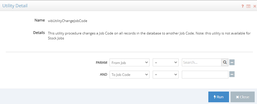 Execute the wbUtilityChangeJobCode utility in Workbench.