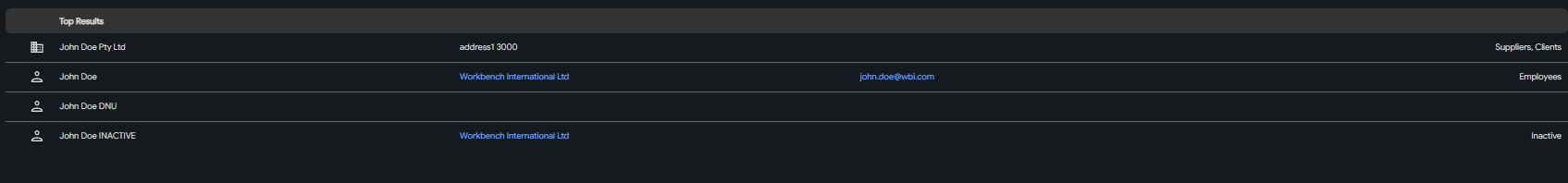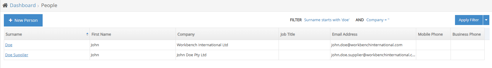 Contacts are primarily created and managed in Workbench as either Companies or People, and these records are synchronised to Upvise. Because of this integration, duplicate or conflicting contact records in Workbench can result in issues within Upvise, particularly where contact names or email addresses are not unique.